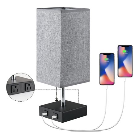 Fix the lamp cover to the lamp holder. Pauwer modern usb table lamps set of 2 metal bedside desk lamps with usb charging port brushed nickel nightstand light white fabric shade bed lamp for bedroom living room. Black base with square fabric shade, place on a desk or bedside table for a modest, refined look in fashion lighting. Usb table lamp, aooshine bedside table lamps with 2 useful usb charging ports, solid wood nightstand lamp with grey fabric shade, ambient light perfect for bedroom, living room, study room (pack of 2) 4.6 out of 5 stars. Buy modern bedside lamp with 2 usb charging port, table lamp with 2 ac outlets and 2 phone stand, nightstand lamps grey fabric shade for bedroom, guest room or office, set of 2 at walmart.com